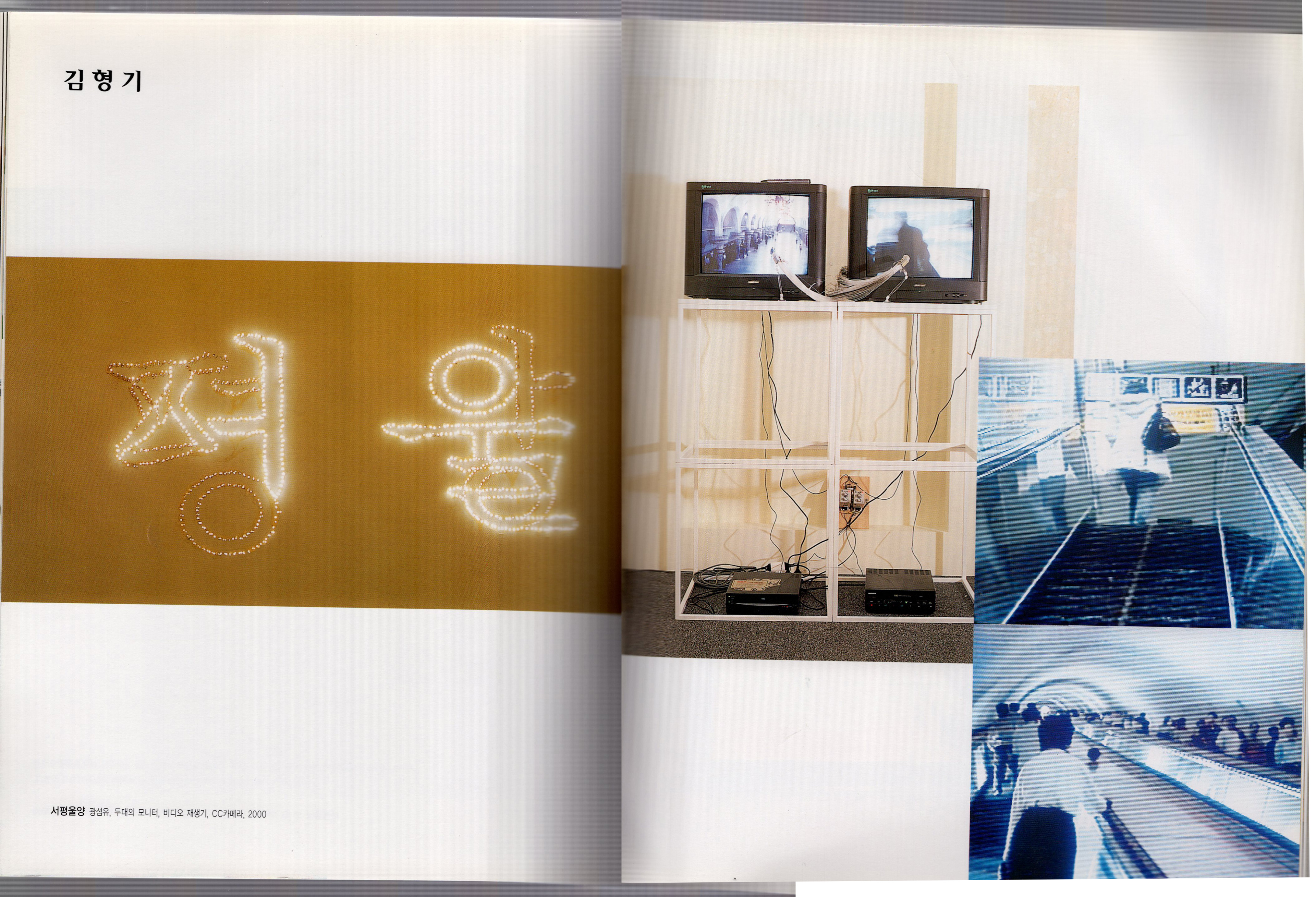 광섬유, 두 대의 모니터, 서울 평양 풍경 비디오, 2000